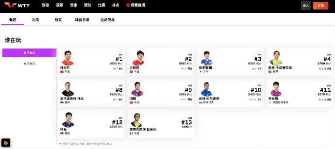 WTT中国澳门冠军赛国乒名单更新:梁靖崑因伤退赛,男单5人出战